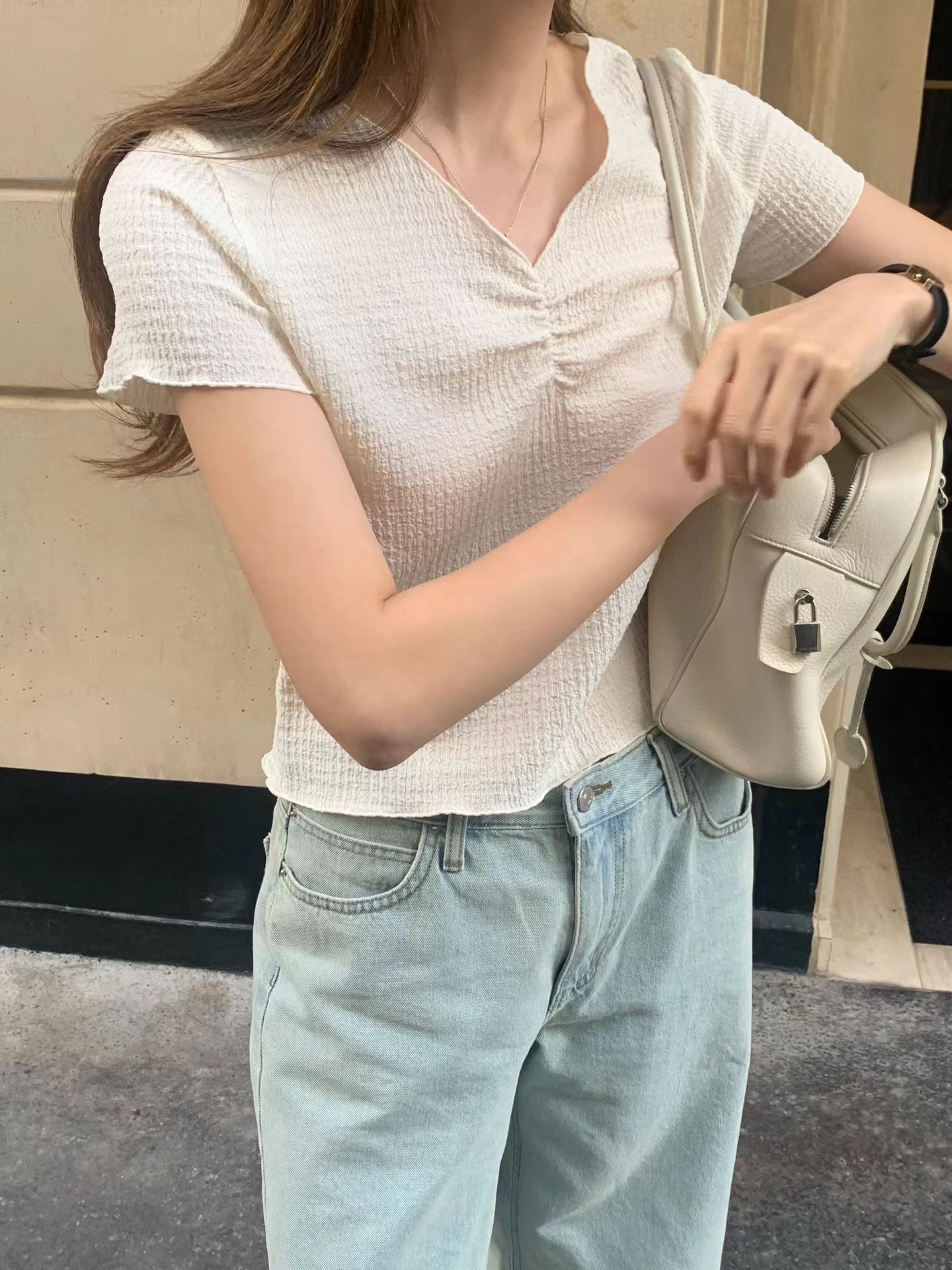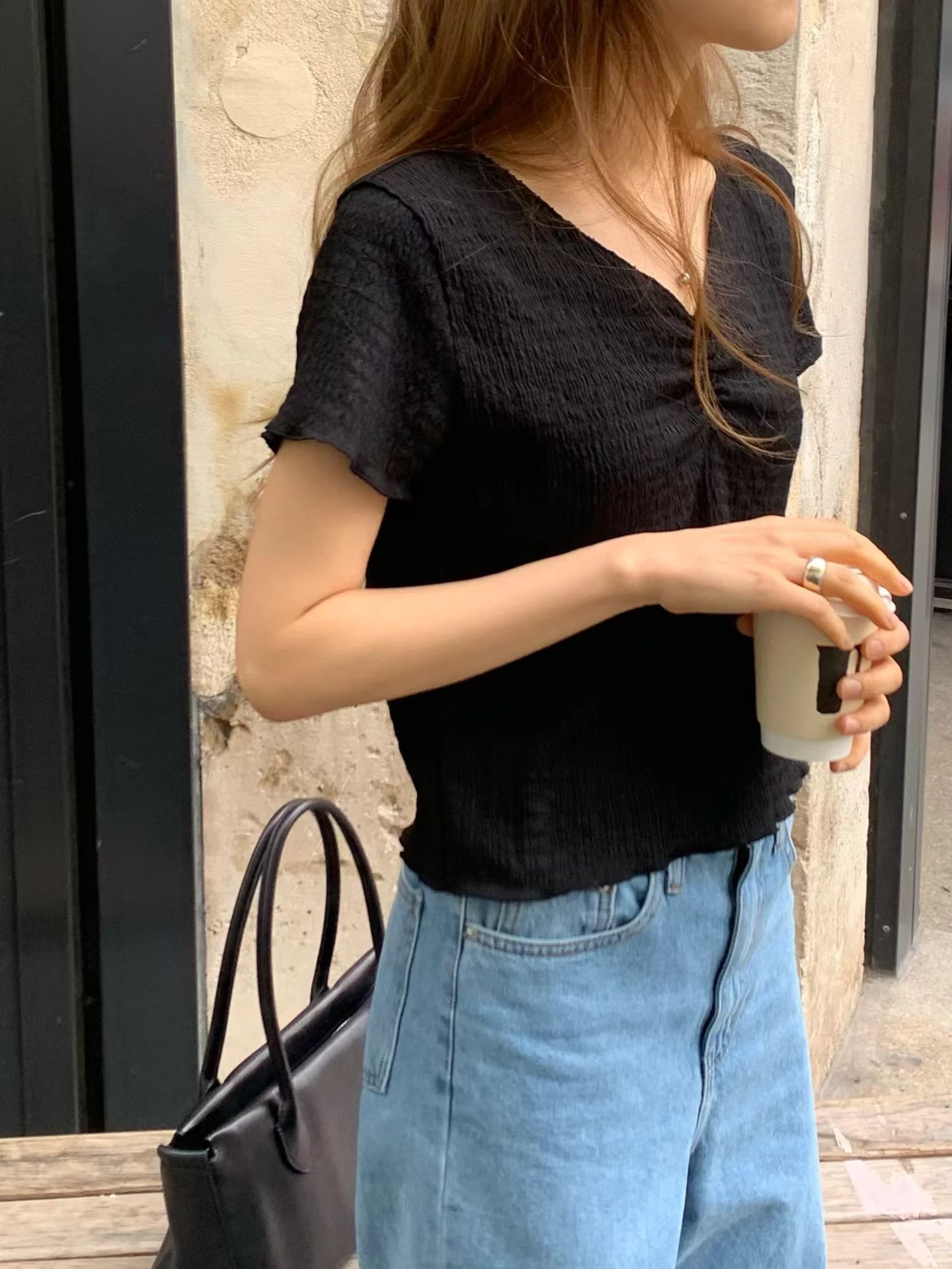 W9成團(早鳥價維持)!《ounce》胸前抓皺短袖上衣